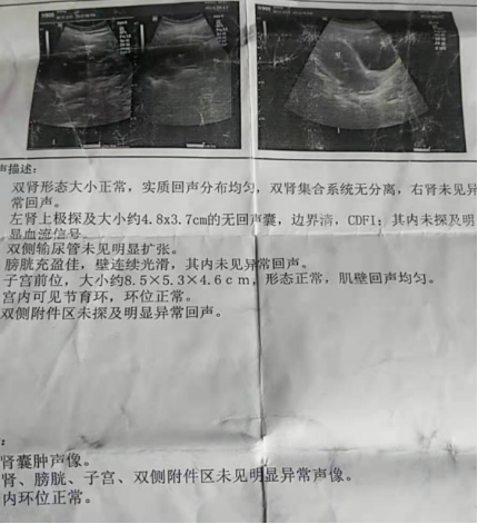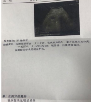 2019.04.26: 第一次检查左肾囊肿4.8*3.7cm囊肿