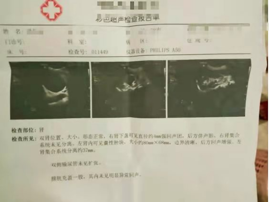大家好,我叫徐国庆,从去年的中旬我就感觉一直腹部、腹部疼痛,说不上什么感受,就是很难受,时间长了越来越觉得有尿频尿急、尿不尽的症状。我父亲的肾衰竭刚开始也就是肾囊肿,我开始害怕我也是这样的情况,一有这个念头我就赶紧去医院做了检查,检查出来是左肾内可见多个囊性暗区,其一大小约20*15mm。