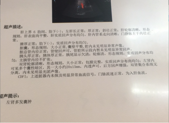 前几天我去做了ct,因为这段时间总是乏力,腹痛,腰痛、尿频尿急、还有点血压高,怕得了什么坏病,特地去了医院做了检查。今天我去拿结果,其他都还算正常吧,有一项我不是很明白,上面写着左肾有一4.8*3.7的无回声囊,问了医生,医生却说定期随访,一听这话,这就是不用管的意思呗,我也就没有当回事。